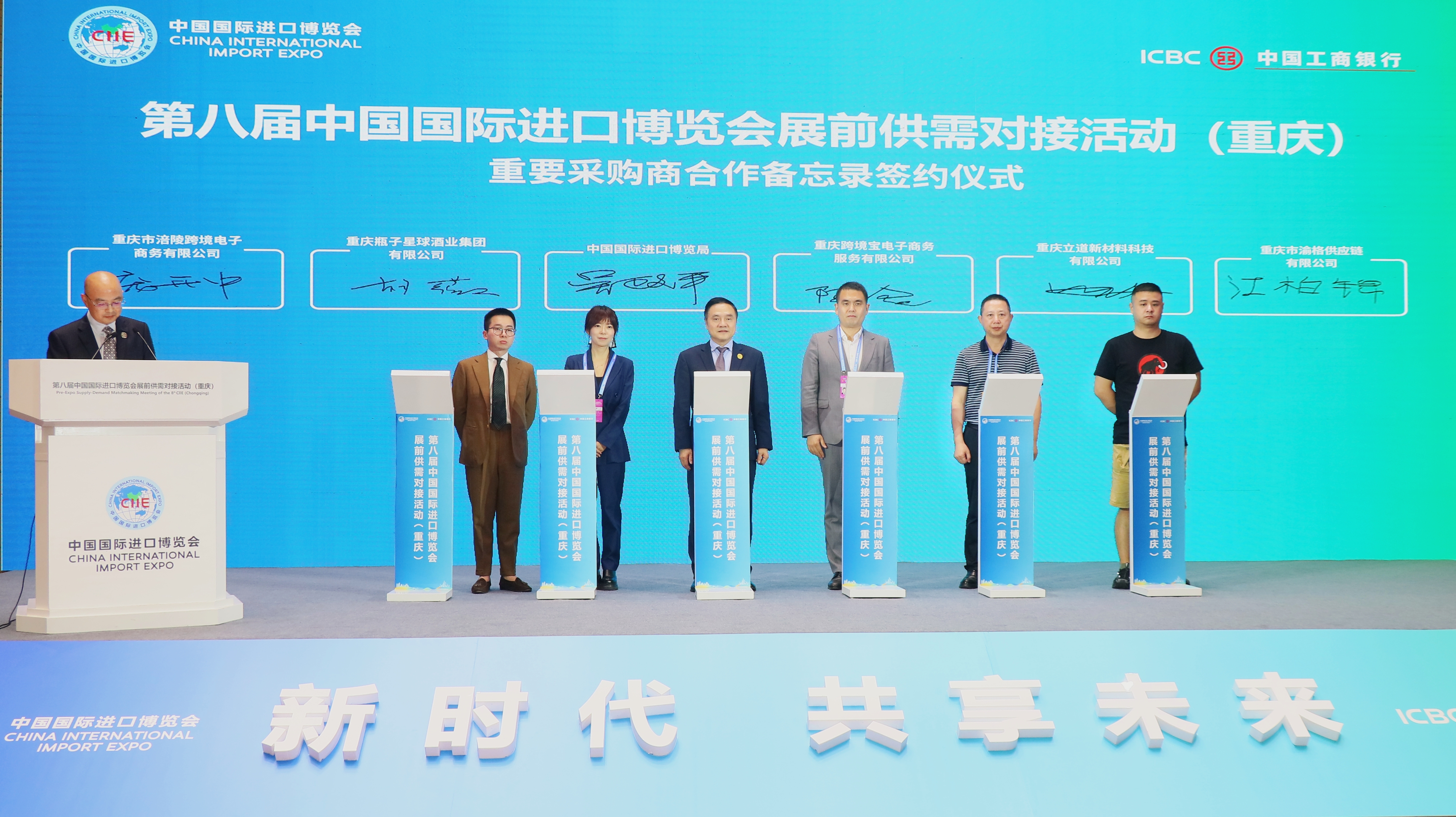 活動現(xiàn)場,中國國際進(jìn)口博覽局與重慶跨境寶電子商務(wù)服務(wù)有限公司、重慶瓶子星球酒業(yè)集團(tuán)有限公司、重慶立道新材料科技有限公司、重慶涪陵跨境電子商務(wù)有限公司、重慶市渝格供應(yīng)鏈有限公司等重要采購商企業(yè)達(dá)成合作意向,并正式簽署了合作協(xié)議。